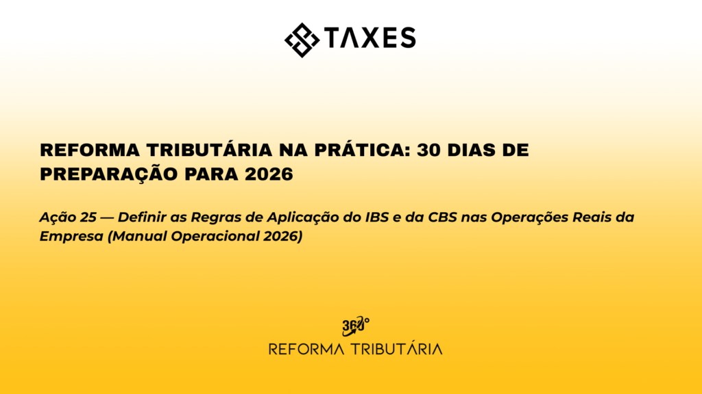 A Ação 25 trata exatamente disso: criar um manual interno simples que deixe claro como a empresa vai aplicar IBS e CBS nas operações reais que ela executa em 2026.