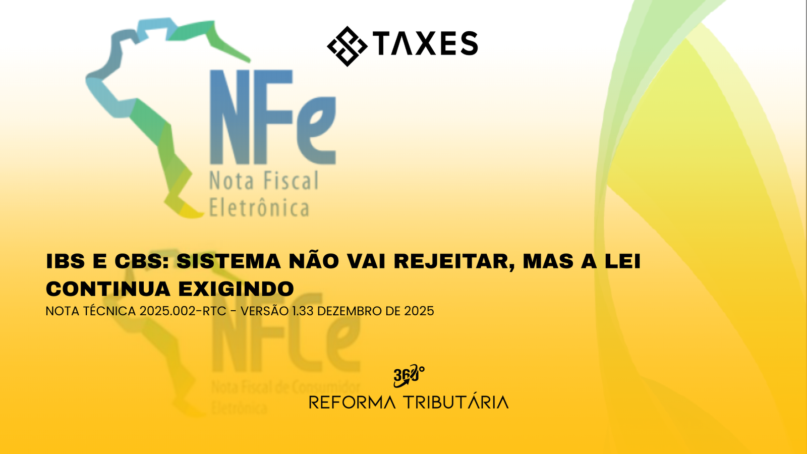 Com a publicação da Nota Técnica 2025.002 – v.1.33, o destaque do IBS e da CBS nos documentos fiscais eletrônicos deixou, momentaneamente, de ser validado por regras de rejeição automática no momento da emissão. Essa alteração, no entanto, é operacional. A obrigação de informar os tributos continua válida nos termos da Lei Complementar nº 214/2025.